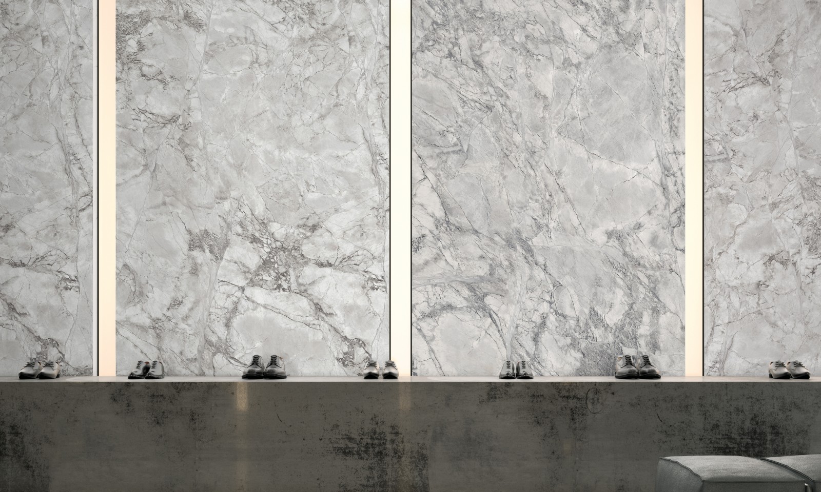 • 鱼肚灰肌理独特自然,摒弃繁杂的形式呈现,保留最原始的纯粹,形态和韵律,呈现出澄澈轻透的视觉效果。