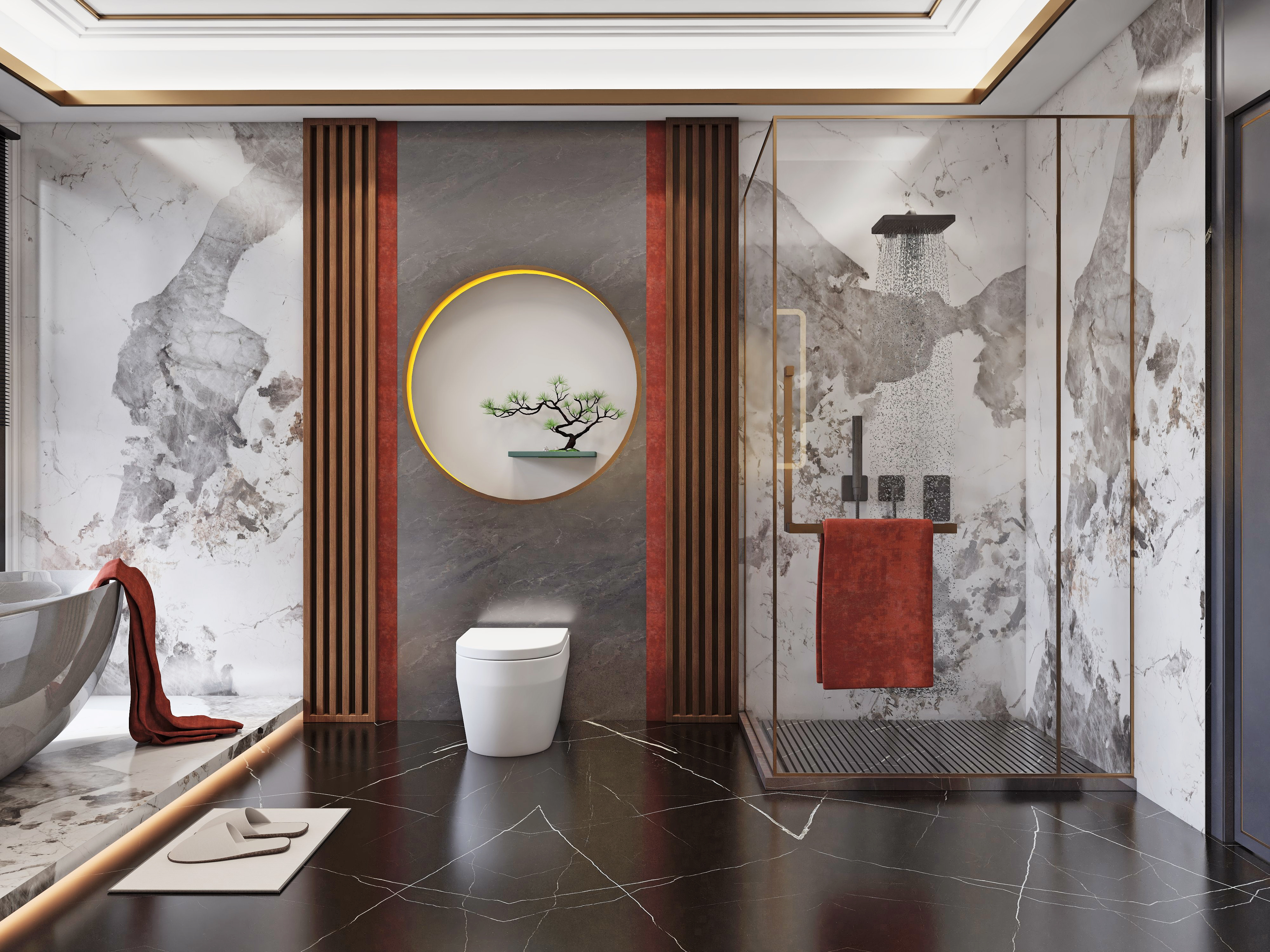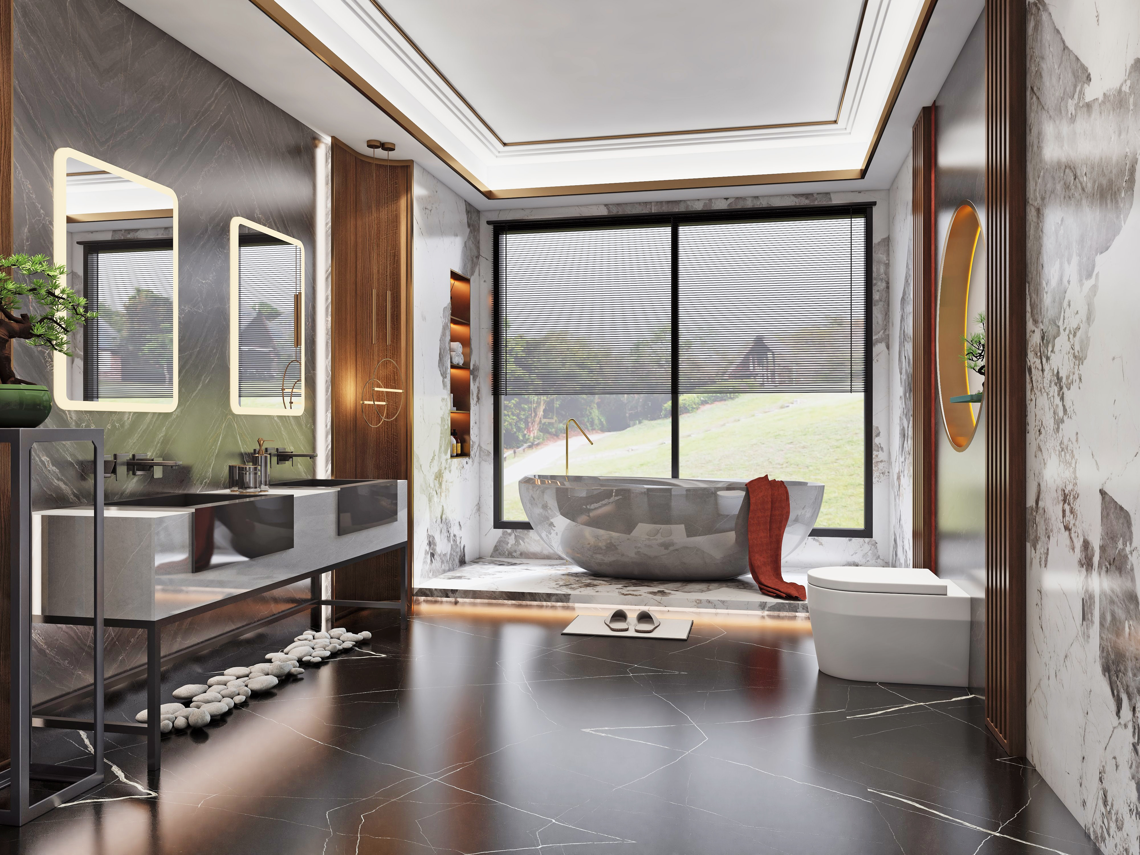 • 异彩纷呈的设计元素中,巧妙将东方元素与其文化内涵加以应用,以现代人的审美需求来打造富有中国传统韵味的岩板卫浴空间,让其注入一股崭新的东方风格。