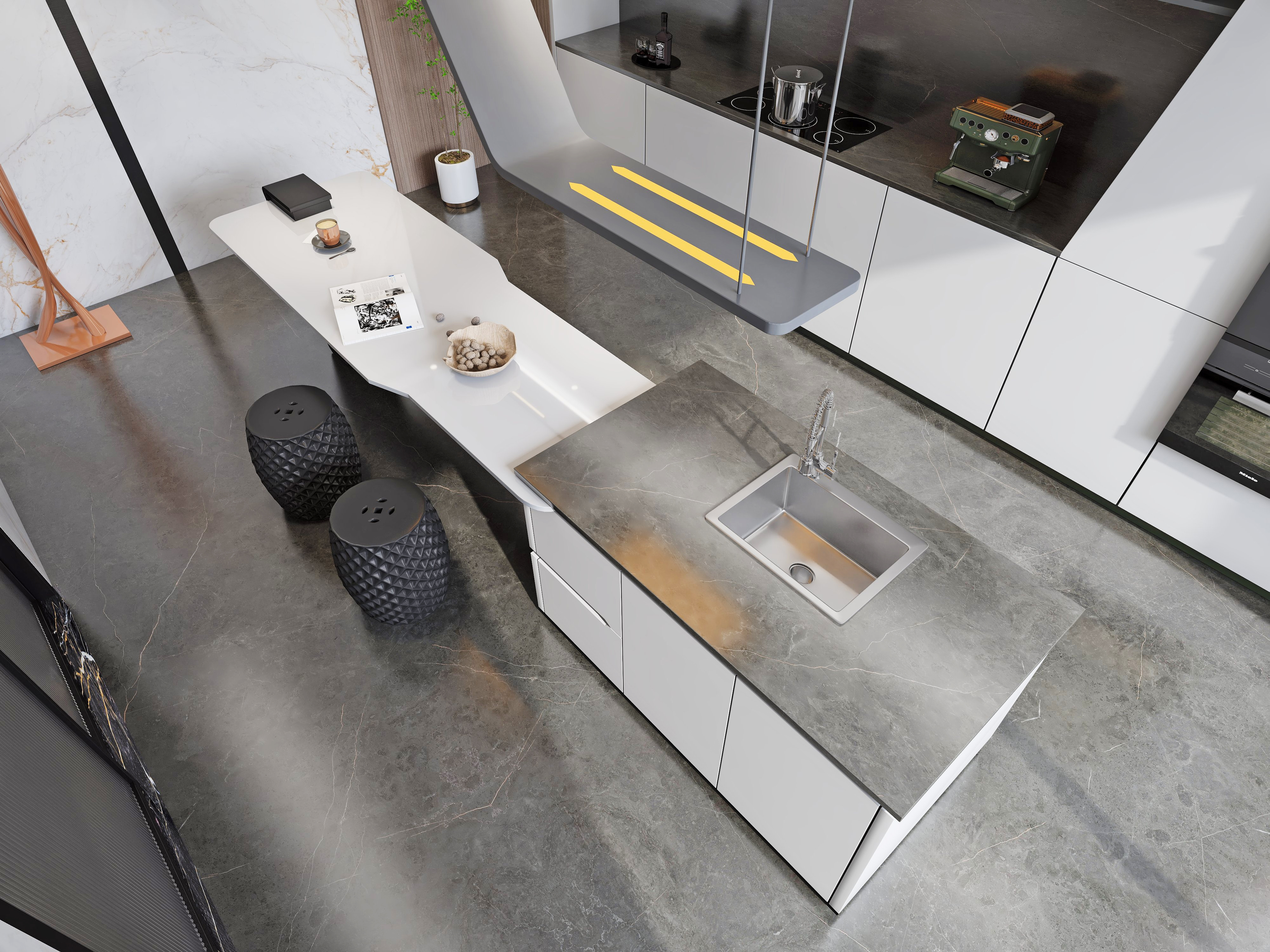 • 对生活格调的追求,不止于饱满的视觉形态,岩板的细腻质感,为厨房打造了一次从视感到触感的突破。